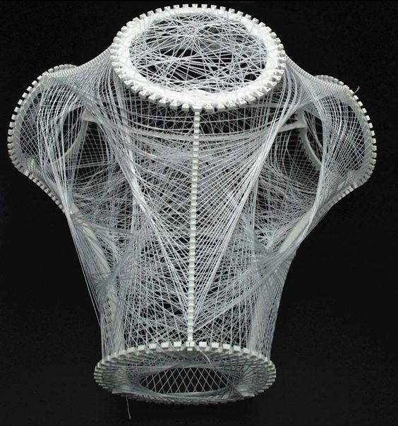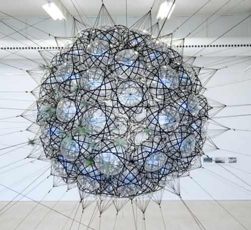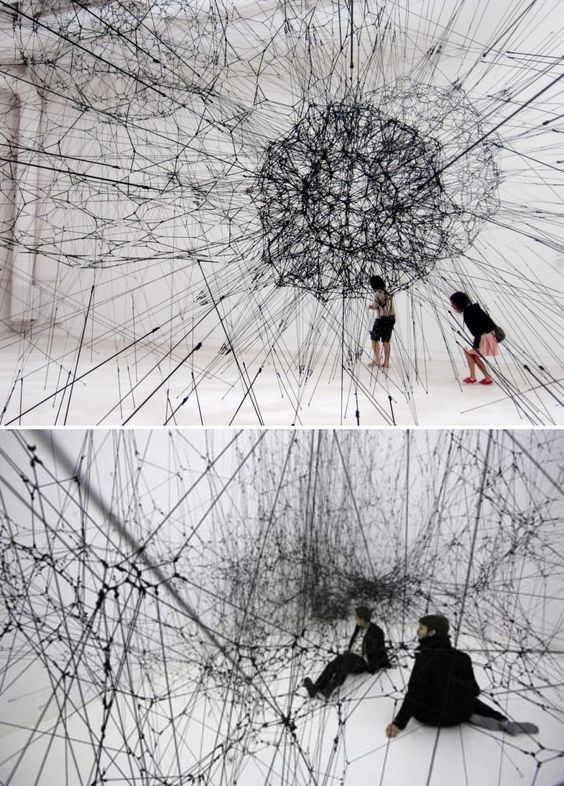 This installation design build up a place that can make people walk into it. I thought it was special because the silk line the designer used create a feeling that the viewers will walk into it carefully by the fragile ingredients. Moreover, it may create a feeling that viewer will think they be restricted in the area because of the dense line surrounding them.